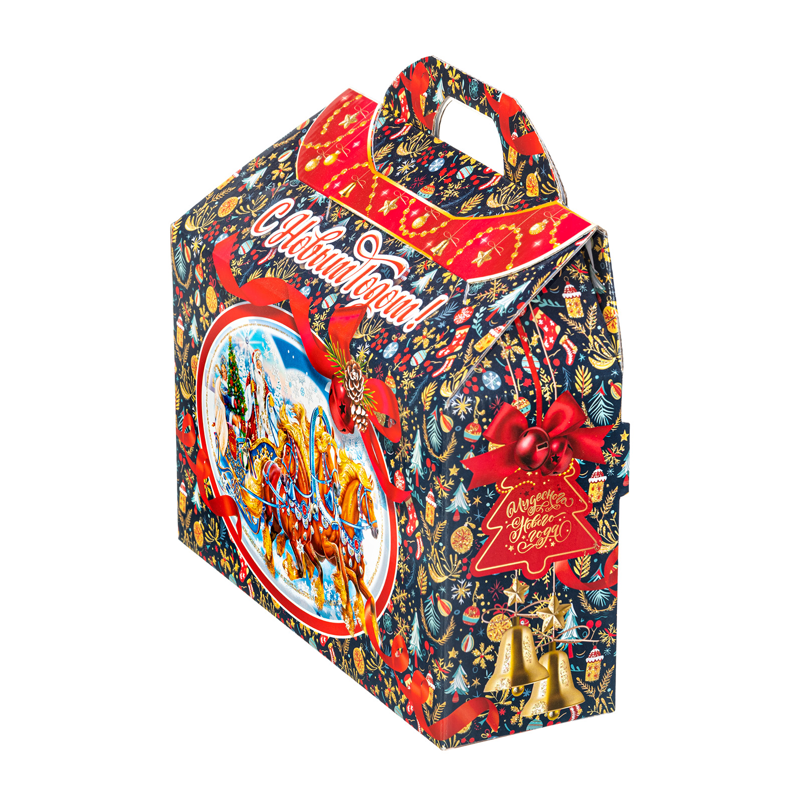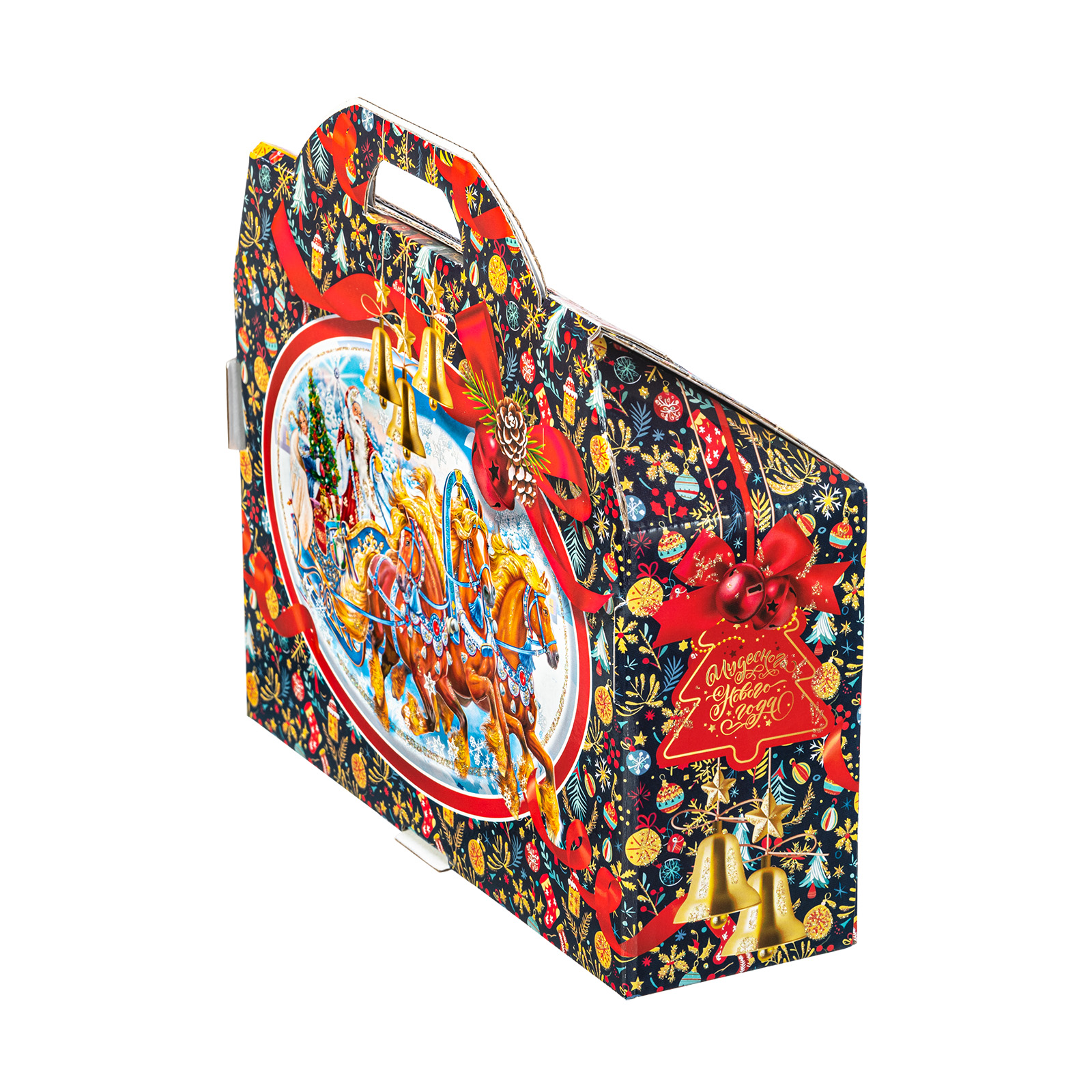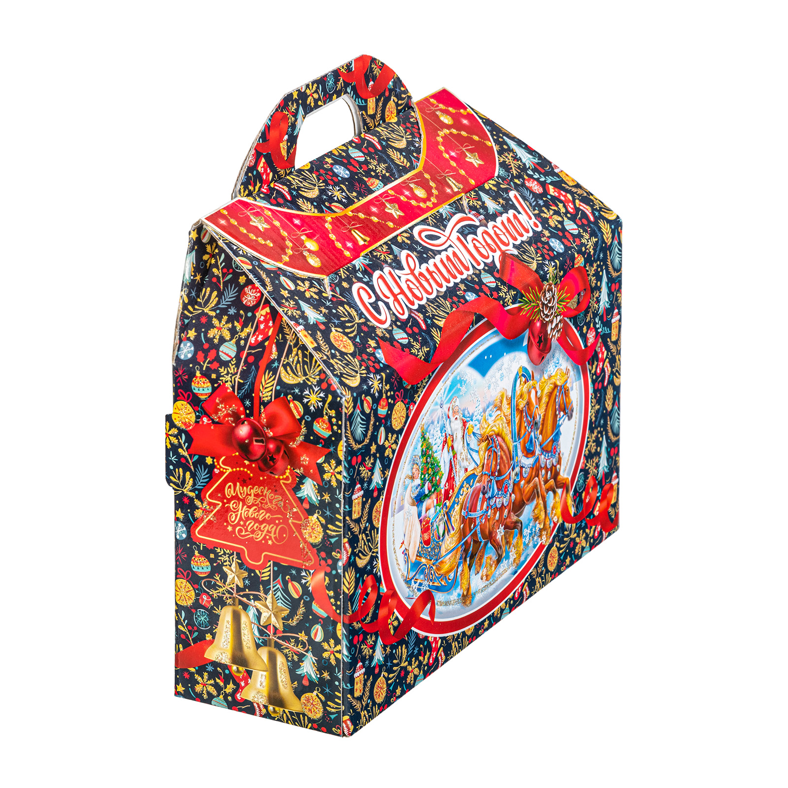 Представляем вам Новогодний Сладкий Подарок в форме стильного чемоданчика! Этот уникальный набор подходит как для подарков близким, так и для корпоративов, создавая атмосферу волшебства и тепла в эти зимние дни!Яркая упаковка сразу привлечет внимание своим оформлением: темно синий фон здесь идеально сочетается с контрастными элементами. Наличие удобной прорезной ручки делает подарок очень удобным для транспортировки. Внутри набора находятся разнообразные вкусные сладости, которые станут украшением любого праздничного стола. Помимо сладкого наполнения, набор может порадовать небольшим памятным сувениром в виде символа наступающего года.