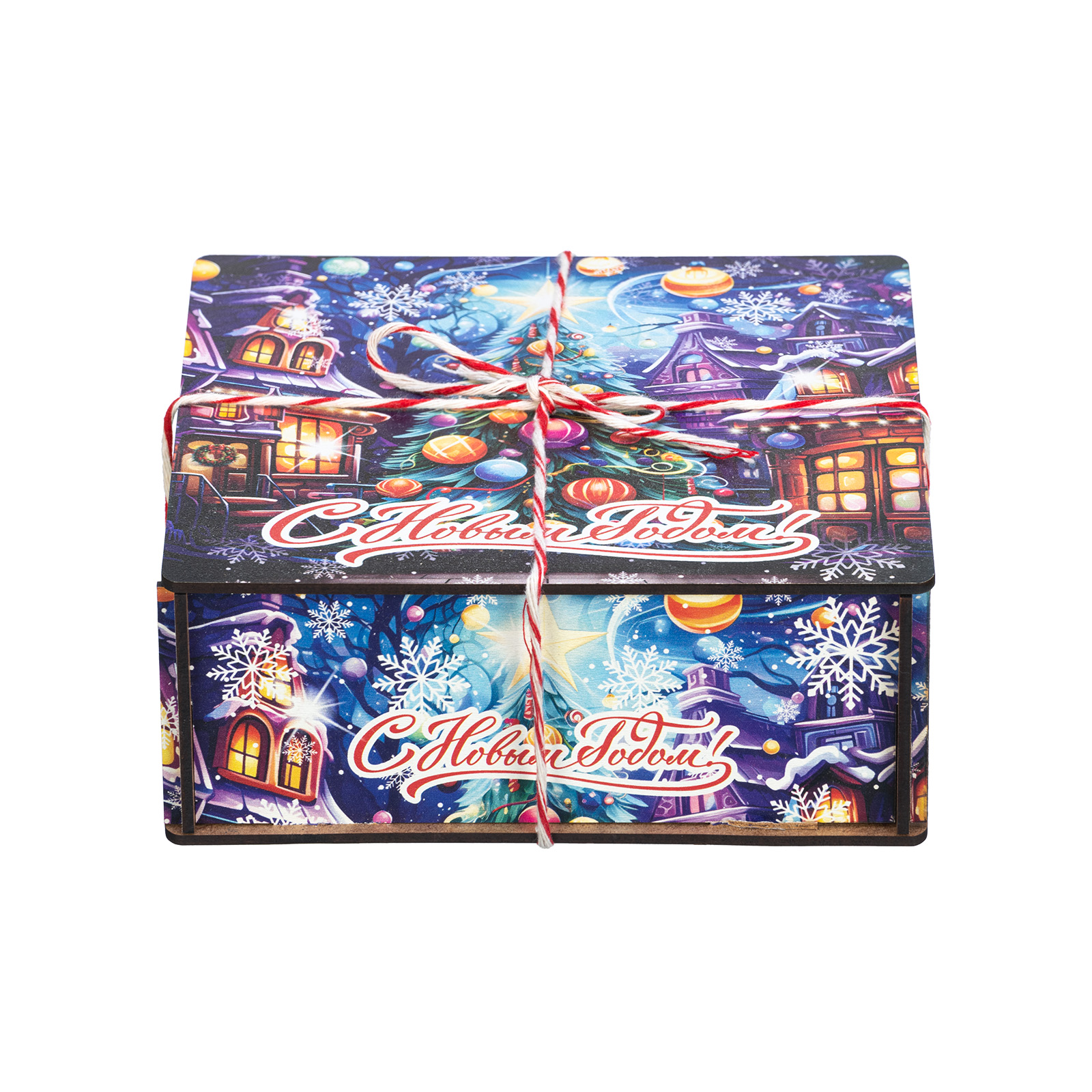 Интересный вариант новогоднего подарка – «Хрустальная сказка (Полезный состав)». Он представлен в разделе Дерево. Отлично подойдет на подарок в 2026 году с символом Лошадь. Внутри такого презента находится кондитерский набор весом 700 граммов.